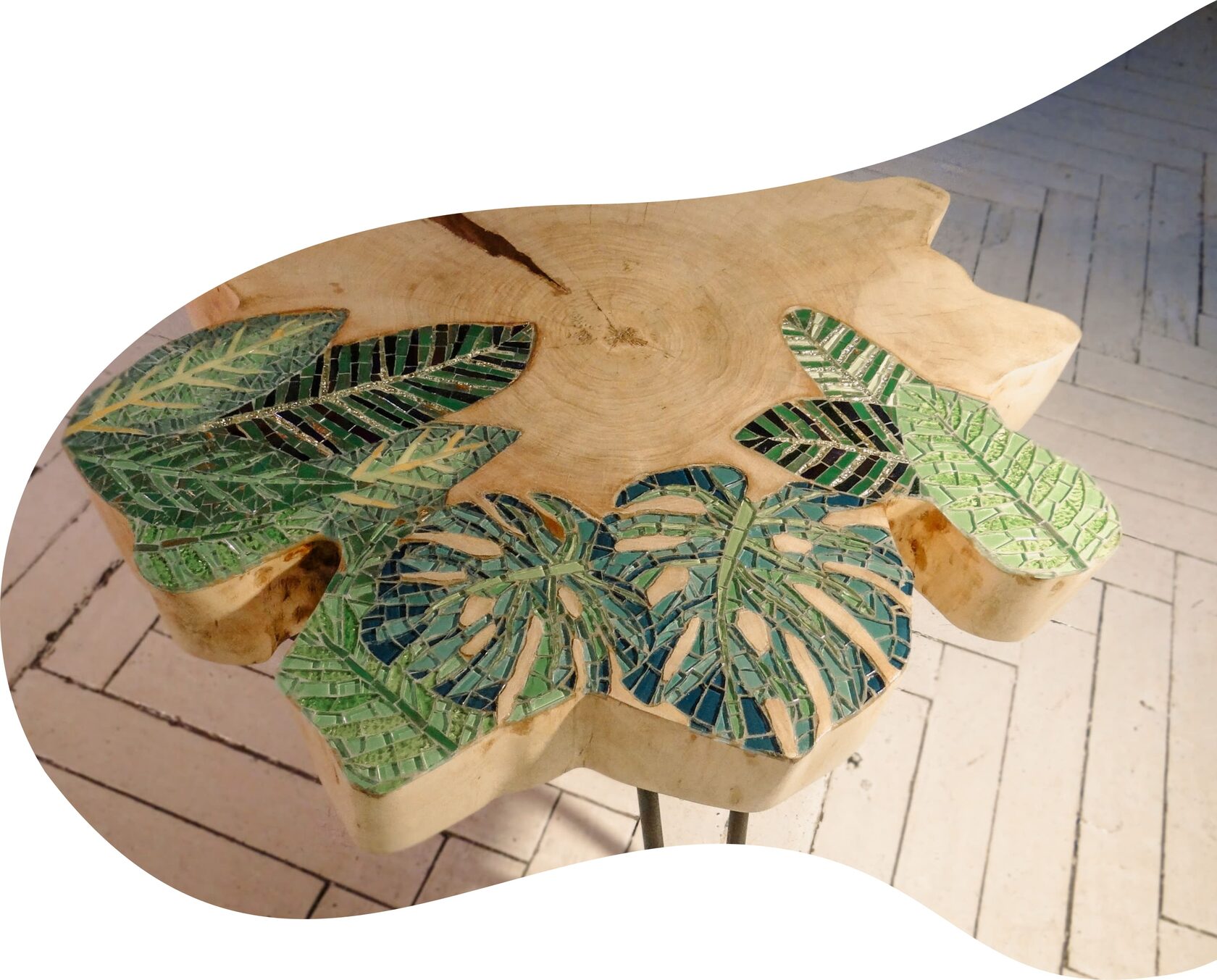 We create furniture, home stuff, large kaleidoscopes and park mosaics.